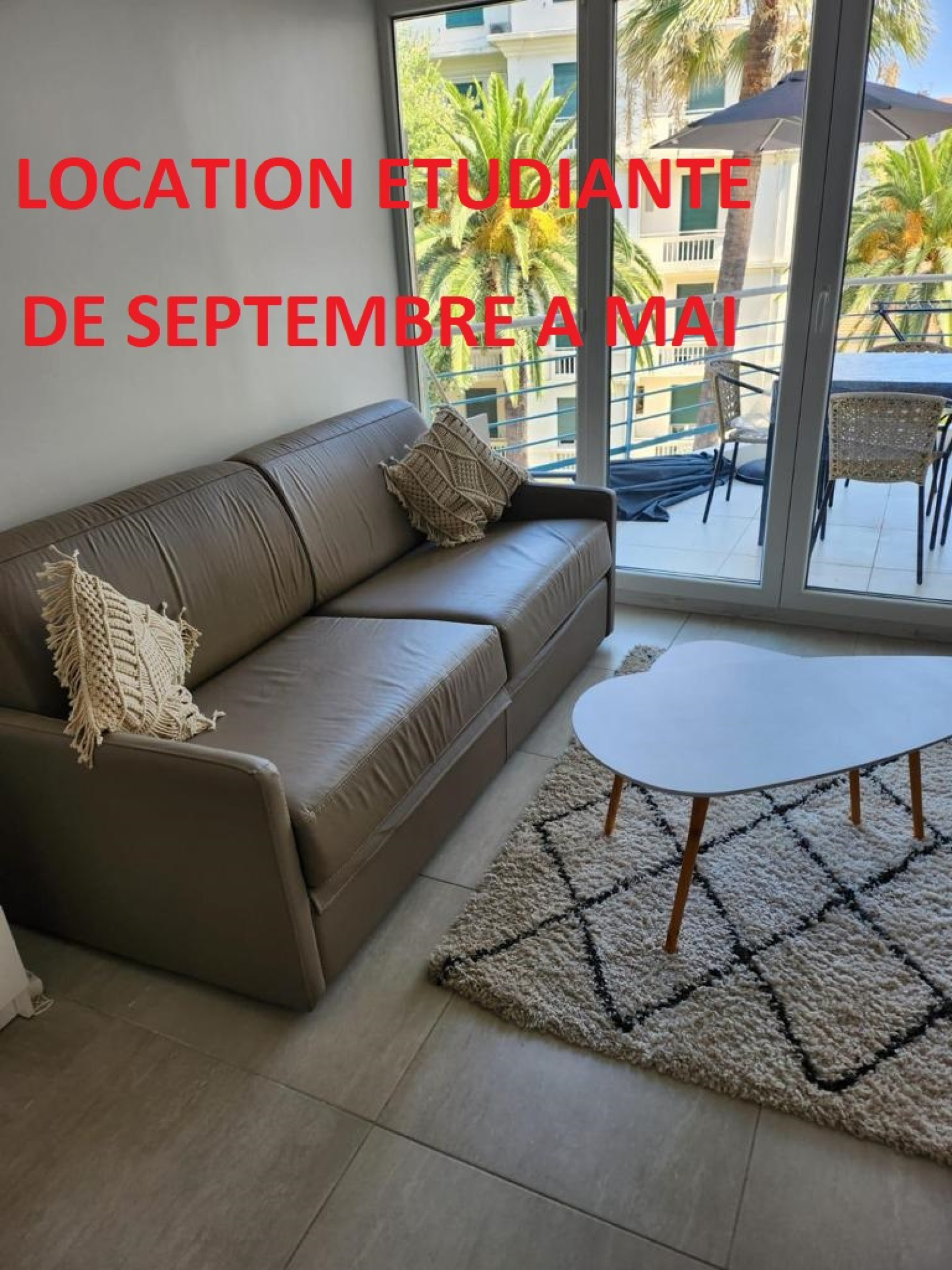 LOCATION ETUDIANTE JUAN LES PINS secteur St Honorat de SEPTEMBRE à MAI 2027 , secteur bord de mer, très beau 2 pièces refait à neuf de 27.74 m² avec vue dégagée , proche de toutes commodités, idéalement situé près arrêts bus, séjour avec lit escamotable, salle de bains entièrement rénovée, cuisine ouverte équipée le tout donnant sur belle terrasse, salle de bains avec wc. Loyer tout compris (charges de copropriété, provision EDF, connexion wifi, taxe ordures ménagères). Honoraires agence 363 euros - dépôt de garantie 1436 euros. -Dossier candidature à transmettre sur le site de l'agence - Contact Aymeric 06 52 42 55 22 - location@planetimmobilier.com