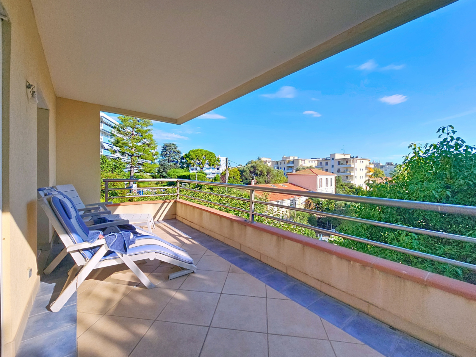 Dans une résidence recherchée, au calme absolu et en avant-dernier étage, découvrez ce superbe appartement de 84 m², baigné de lumière et offrant de magnifiques espaces extérieurs. Il se compose d’une entrée accueillante, d’un double séjour avec cuisine ouverte, donnant accès à deux terrasses exposées Ouest et Sud, idéales pour profiter du soleil tout au long de la journée. La partie nuit comprend trois chambres ouvrant sur une troisième terrasse orientée Est, parfaite pour les réveils en douceur. Vous bénéficierez également de deux salles de bains et deux WC pour un confort optimal. Un garage fermé complète ce bien rare sur le marché. À seulement quelques pas des commerces, transports et plages de Juan-les-Pins, cet appartement est une véritable opportunité pour profiter de la Côte d’Azur dans les meilleures conditions. Soumis au régime de copropriété. Charges annuelles : 4980€ Honoraires compris à la charge de l'acquéreur d'un montant de 6%.
