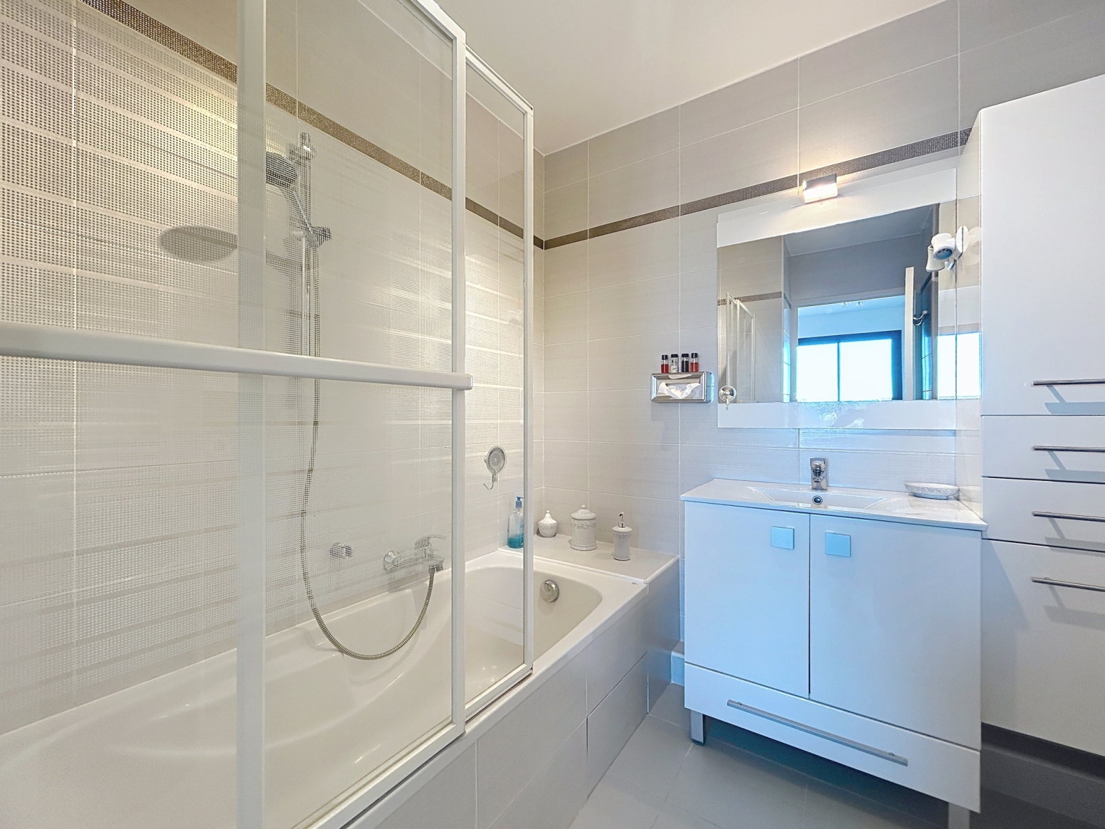 Aucun travaux à prévoir : l’appartement est équipé de double vitrage, climatisation, volets roulants électriques et store-banne électrique.